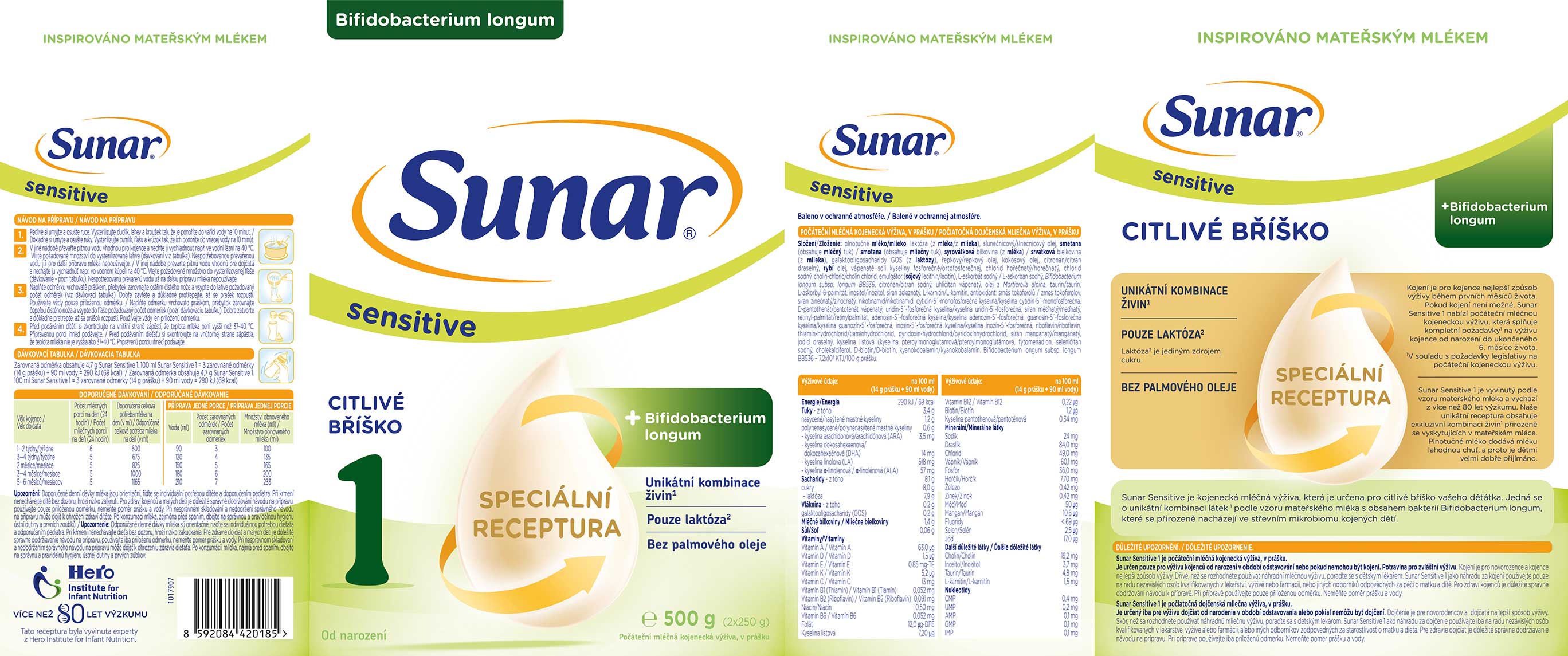 Plnotučné mlieko, laktóza (z mlieka), slnečnicový olej, smotana (obsahuje mliečny tuk), koncentrát srvátkovej bielkoviny (z mlieka), galaktooligosacharidy (z laktózy), repkový olej, kokosový olej, draselné soli kyseliny citrónovej, rybí olej, vápenaté soli kyseliny ortofosforečnej, chlorid horečnatý, chlorid cholínu, emulgátor (sójový lecitín), citran sodný, L-askorban sodný, chlorid sodný, Bifidobacterium Longum BB536, olej z Mortierella alpina, uhličitan vápenatý, taurín, L-askorbyl-6-palmitát, inozitol, síran železnatý, L-karnitín, síran zinočnatý, zmes tokoferolov, nikotínamid, kyselina cytidín-5´-monofosforečná, D-pantotenát vápenatý, kyselina uridín-5´-fosforečná, síran meďnatý, retinylpalmitát, kyselina adenozín-5´-fosforečná, kyselina guanozín-5´-fosforečná, kyselina inozín-5´-fosforečná, tiamínhydrochlorid, riboflavin, pyridoxín hydrochlorid, síran mangánatý, jodid draselný, kyselina listová (kyselina pteroylmonoglutámová), fytomenadion, seleničitan sodný, cholekalciferol, D-biotín, kyanokobalamín.