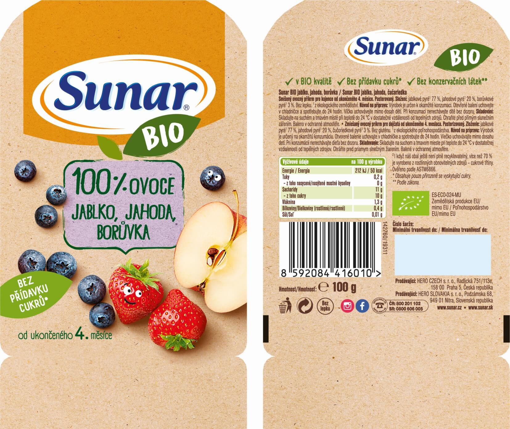 100% ovocie jablko, jahoda, čučoriedka 100 g BIO kapsička je plná 100 % vyzretého a šťavnatého ovocia, ktoré sa pestuje v najvyššej BIO Baby kvalite. Neobsahuje pridaný cukor. Kúpiť online Prečo si vybrať BIO kapsičky • Ovocie špeciálne pestované pre deti • Bez pridania cukrov • BIO Baby kvalita Stiahnuť jedálniček Najširšia ponuka kapsičiek plných vyzretého šťavnatého ovocia bez prídavkov cukrov. Zloženie Jablkové pyré¹ 77%, jahodové pyré¹ 20%, čučoriedkové pyré¹ 3%. Bez lepku. ¹ z ekologického poľnohospodárstva. Stiahnuť obal Sunar BIO kapsičky plné šťavnatého ovocia Ďalšie odporúčané produkty 100% ovocie hruška, malina Preskúmať 100% ovocie jablko, banán Preskúmať 100% ovocie jablko, banán, mrkva Preskúmať Previous Next